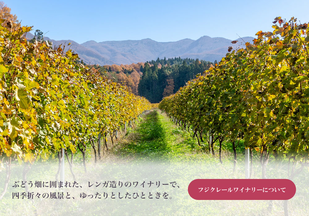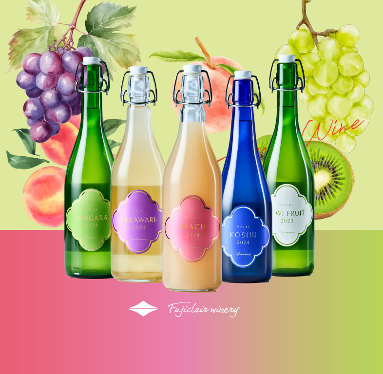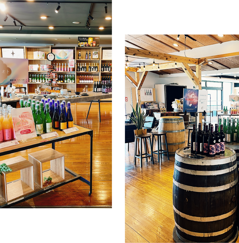 フジクレールワイナリー ワインショップでは、展開する4つのブランドや、ショップ限定のワインを取り揃えております。 ショップ内では、甲州勝沼を一望できる試飲スペースや、ワインと共に暮らしを豊かにするモノやアイデアを発信するセレクトショップ「暮らしとワインのマルシェ」エリアもあり、ワインのある生活を提案しております。是非、山梨にお越しの際はお立ち寄りください。