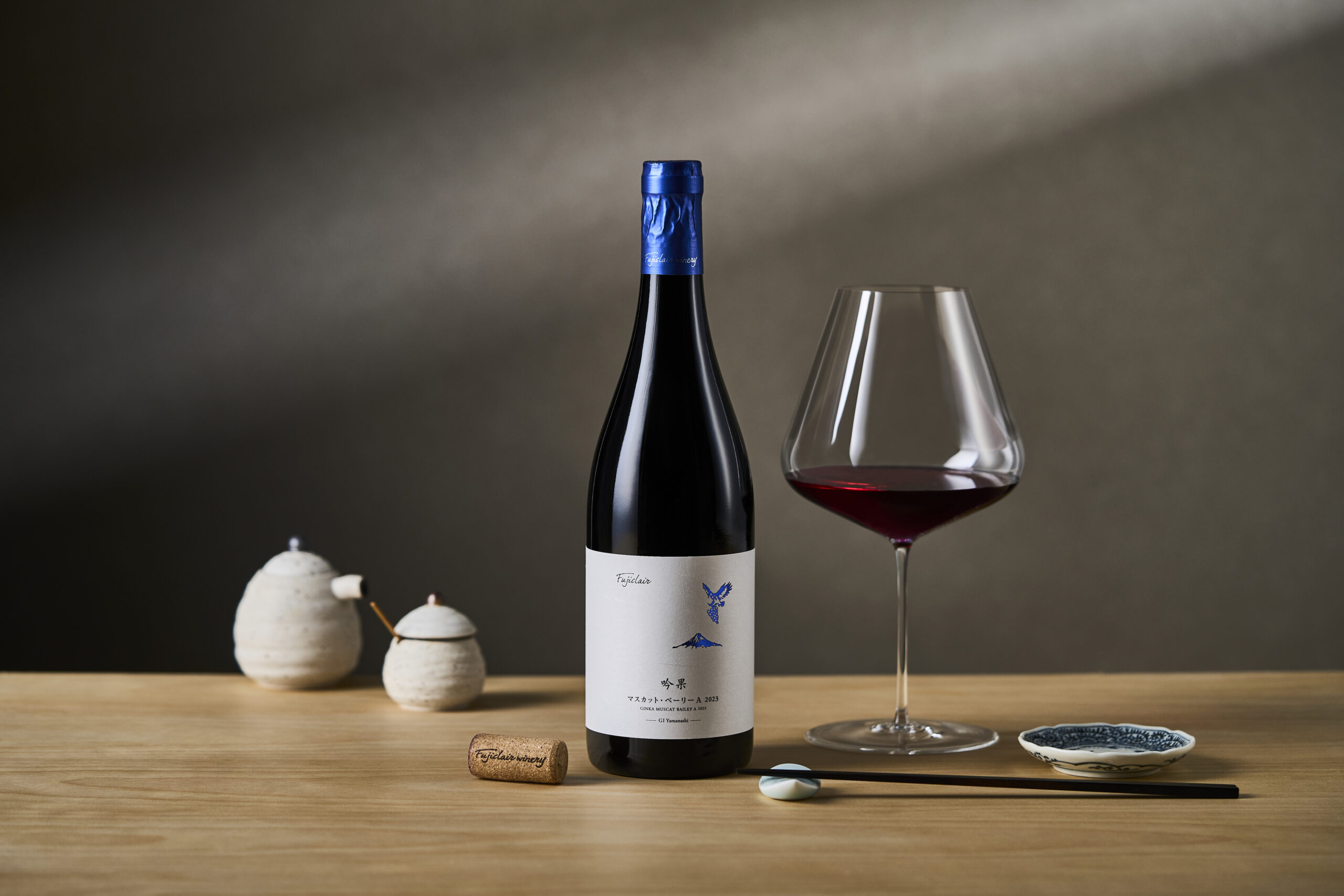 山梨県内の契約栽培農家の中で、特に上質なマスカット・ベーリーA種のみを吟味し、丁寧に造り上げました。ワインは発酵後に小樽で熟成させ、ぶどうの凝縮感が詰まった繊細かつ豊かな味わいの上質なワインに仕上がりました。 「フジクレール」シリーズは、雄大な富士山の恵みと、豊かな山梨のテロワールを活かしたワインシリーズです。葡萄の個性を最大限活かし、深みや味わいを加えることで、日本の食に合うワインを目指しております。