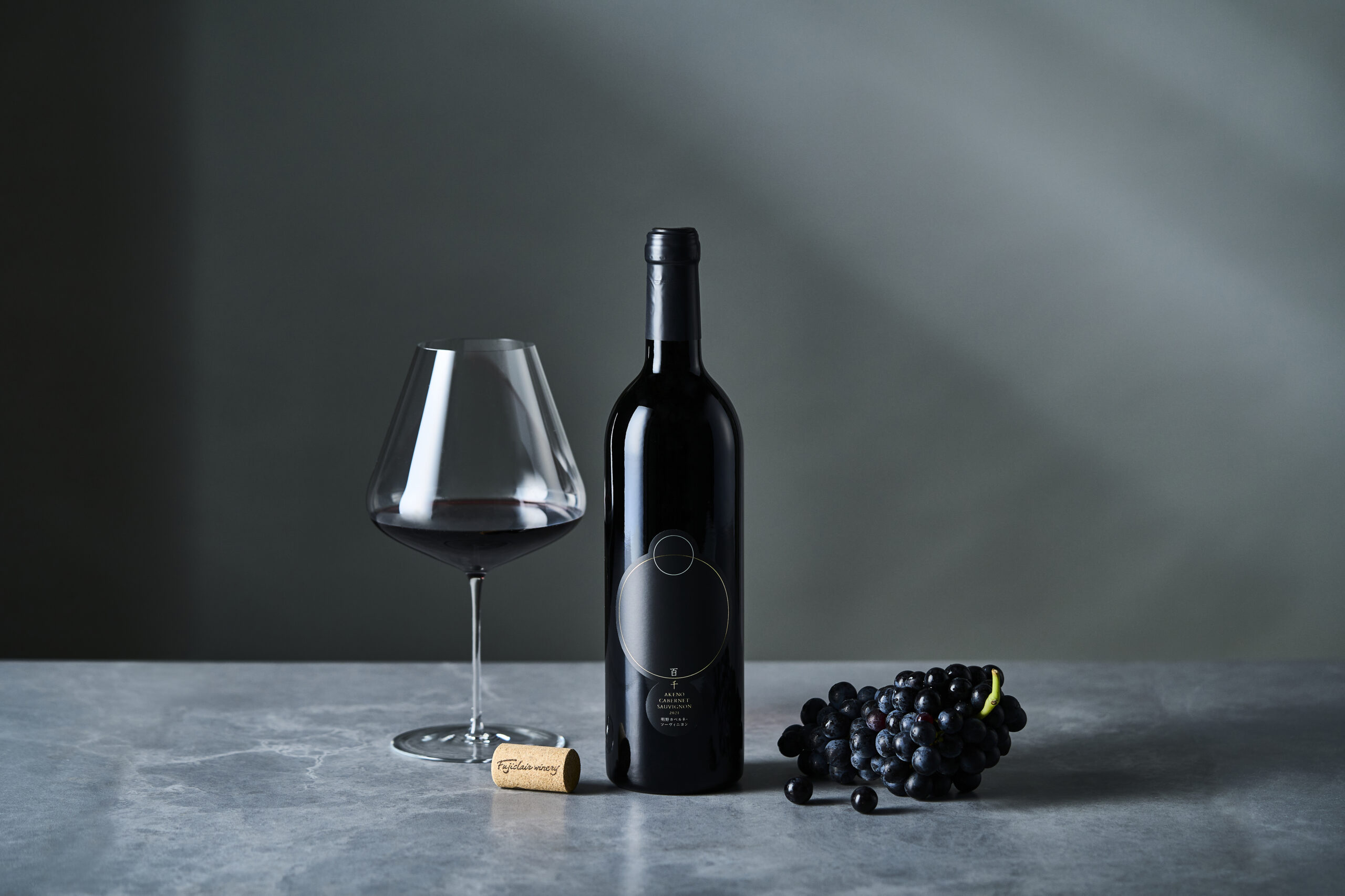 「百千」シリーズは、フジクレールワイナリーの新たな幕開けとなるものでもあります。これまで展開してきた「フジクレール」「クラノオト」「LADY beetle」のさらに上位クラスのワインを目指し、デザインは黒を貴重とした高級感のあるテイストに仕上げました。ラベル中央には、金と銀の箔で描かれた2つの円が重なり、百と千を表しております。