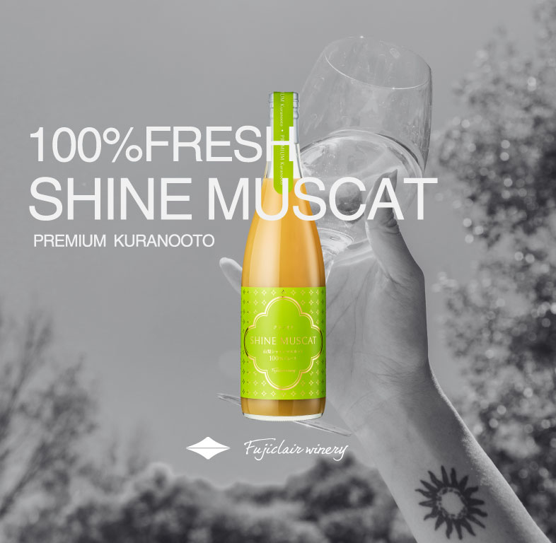 果実王国・山梨県で育まれた、厳選したシャインマスカットを100%使用したプレミアムジュース
