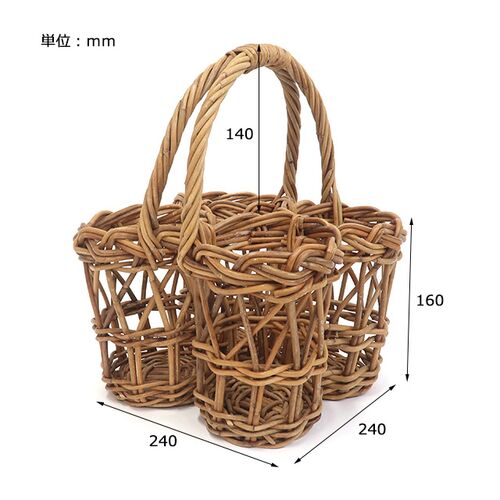 - 皮付きラタンの風合いを生かしたアラログのボトルバスケット。