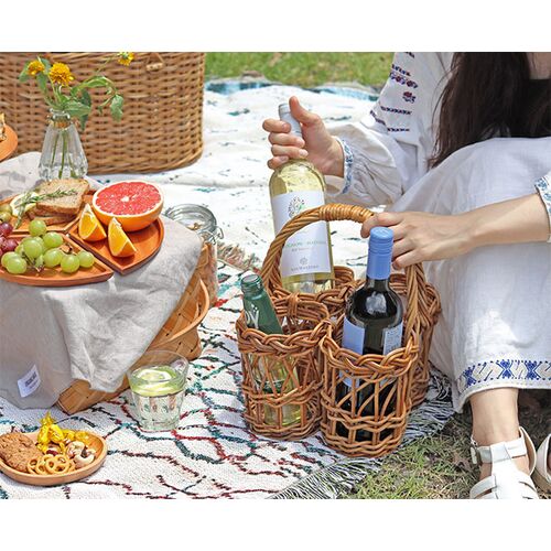 お部屋でのワインやボトルの見せる収納や、持ち運びにも便利なデザインです。