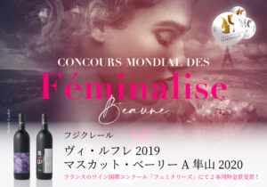 フランスのワイン国際コンクール「フェミナリーズ」にて金賞をダブル受賞!フジクレール 「マスカット・ベーリーA隼山2020」「ヴィ・ルフレ2019」